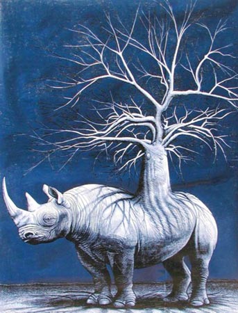 'The Dreamburdens', master printmaker John Moore's most recent body of work, represents fusion between his technical skill and evocative subject matter. The conceptual matrix behind Moore's work lies in the wildlife and natural world of Africa. 'The Dreamburdens' explores this theme further by investigating dreams. Moore maintains that one's reality is born from one's dreams. It is from humankind's dreams that an industrialised, mechanised and urbanised world has evolved. Within this landscape, the world of animals and nature finds an existence both threatened and protected.