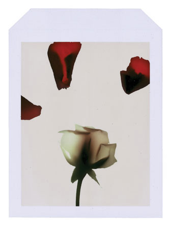 Svea Josephy exhibits two very different series that combine image and text. Her polaroid emulsion lifts onto gold and silver leaf are smaller and more effeminate with their embossing and pencilled text in contrast to the three large prints alongside. Love, Sex, and Nature are almost repulsive in their slimy, organic fleshiness.