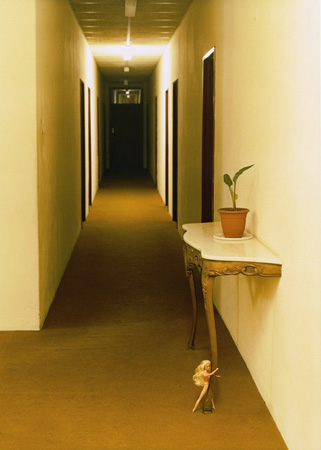 Jillian Lochner, well known in the commercial industry for her photography, has produced a series of three photographs of a nude Barbie doll cavorting with an old-fashioned table leg in a harshly lit hotel lobby, called I LOVE YOU!.