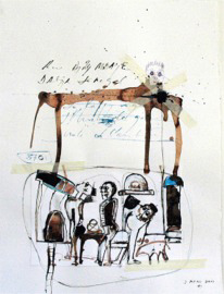 The most interesting South African work for sale was by Colbert Mashile. Several prints of what can be best described as an abstract bull on a cart were available, and they were absolutely intriguing.