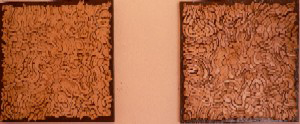I was most enamoured with a smooth surfaced piece, Untitled: from the memorial series, that was created with a square/rectangular patterning of bone. These meditative abstractions offer a multitude of ideas particularly if one engages with and realises the specific medium of their production.