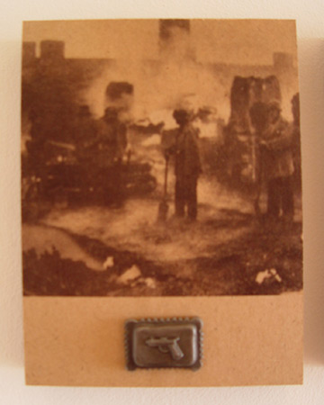 War and instruments of war were replicated in small casts in Cry over spilled milk and Untitled which had forceful undertones in miniature as they were not readily apparent until investigated closer. The work translated better at Gordart, as the imagery accompanied by the casts was consistent thematically, and appeared at eye level rather than on the floor as they were at Franchise.