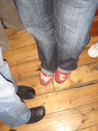 Christian suggests that we pull through to the Kimberley hotel where the afterparty is happening and that someone there would probably be wearing them. I think that no one would be stupid enough to wear them to a party they know I would be at. We shoot through to Cape Town and have a few drinks at the party. Obviously the Cape parties have started taking their toll and the only real conversation I have is with Stephen Hobbs' wife about 'smudging'. Also catch up with Robin Rhode. At this point, Cape curator Gabi Ngcobo stumbles in and reveals that she is in fact wearing the stolen shoes. I tell her to hang ten. Christian flags down a couple of cops in the road. After spending a few hours in Caledon cop station they inform me that I can make a case, meaning that Gabi would be taken to Pollsmoor prison. I decide against it and they agree to help me without making the case. Gabi returns the shoes.