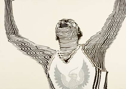 In the installation The Boxers, old army carry bags are transformed into punching-bags and complemented by a video projection of boxers sparring at a gym in Hillbrow. While 'Urbanisation' deals with the rapid