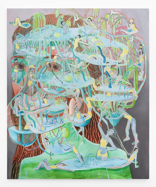 Like Lispector, Steyn is interested in the moment of metamorphosis, the pleasure of becoming. This show is chock-full of chimeras: mermaids, medusas, and basilisks, or else bodies morphing into other bodies. In submardreaming, for instance, hair becomes legs becomes palm fronds becomes arms becomes lips becomes streams becomes hair again. Viewers unfamiliar with Steyn’s knack for the slippy, drippy, and trippy may experience dizziness or nausea, symptoms of the phenomenon of overflow.