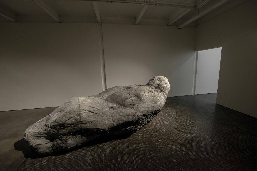 Modernity’s unease with the physical body saw not only the Cartesian divide of spirit, mind and body but also categorised women’s bodies as animal, uncontrolled or insane. Moe’s large figure is serene, unapologetically full and forceful. While recognisably female, this body is not concerned with narratives of beauty. This figure is not the sensual nude of western art history but something ancient that came before modern women were dispossessed of a connection with their bodies. The head is the high point of the sculpture and is held up by the strong curve of the back, shoulders and neck. While lying down, this figure is not reclining or passive. Moe’s work speaks an older language of stone implements and a culture where women were worshipped for their ability to reproduce. In other words, the sculpture alludes to a time when bodies were valued for what they could do, rather than aesthetics.