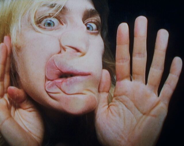 In Kristin Lucas’ Host, we see what seems to be a strange combination of a call line, game show, sports commentary, and digital agony aunt. A caller logs into a digital system of some kind, the video appearing to be from a security camera, lending the work a lo-fi, found-footage quality. A disembodied voice says, “Enter Access Code”. The caller replies, “R-E-W-I-M-O-K. Dairy free, no fish.” The characters represented in this work are shown talking past one another, attempting to reach connection but never quite managing. The character on the other line continues, “Caller, I love you.” And the caller responds, “I’ve just been feeling outside of myself.” These exchanges are strangely poignant, and they encapsulate the modern condition of endless digitisation – in our attempts to become more connected, we have lost connection altogether. Caller: “Not only did the computer shut down, but so did I. […] I went in for a tune-up, but they told me that I’m dead.” And all the while, the person on the other end keeps talking past the caller, saying things that make no sense. The sentiment, Caller, I love you, loses its meaning. Reflecting on this work, I’m left wondering whether love can real in a world where connection is unstable, unmanageable.