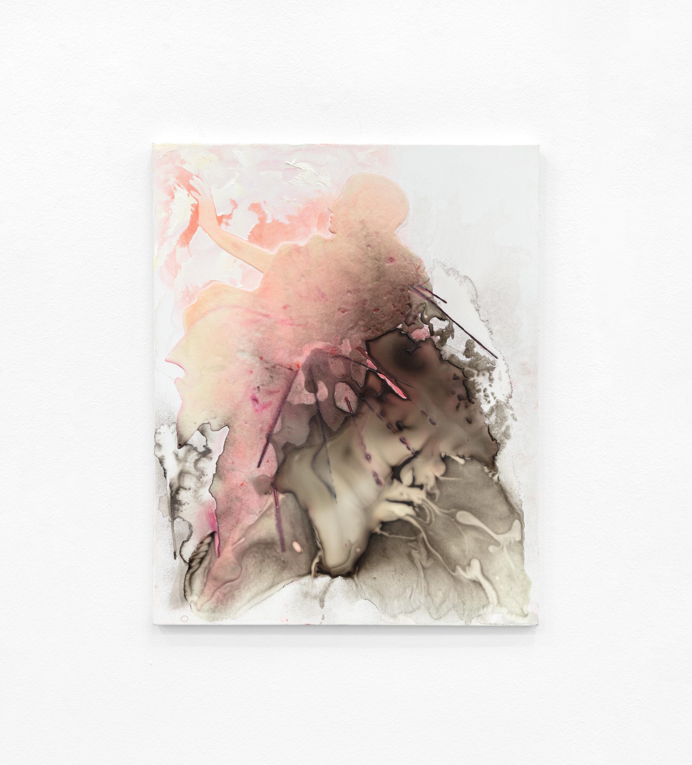 Love is a practice, of freedom. To some, if it looks like anything, its social justice. Love is a way of being in relation to others, to the non-human, and to a world experienced as unstable and in flux. I see it as a transformative force in art and life, with its rupturing side turning grief into a generative form feeding creativity. Vulnerability is its core, and to be vulnerable is to be open, where boundaries loosen to become grounds for empathy and resistance to oppressive systems. For me, painting that asserts material transformation and the agency, the life, of the medium, feels most potent in manifesting the complexities of love in our time. Painting as model: its material acts analogous to a philosophy of relationality. This is how my glue and ink paintings work for me – through chemical reaction and interaction of pigments and glue, the pull of gravity (I work horizontally), the drying effects of the air, all in communion with my bodily gestures as I coach liquid and viscous flows this way and that. The glue is white at first, only revealing the forces of colour and the visual incidents caught in its sticky substance once it has dried and turned transparent. It’s a kind of painting blind where the painter is just one force in the painting-world that is being formed. There is risk. Trust. Then, once placed in vertical relation, the viscous residues beckon for continued engagement and visceral oil paint comes into play. At this point enters a ‘call-and-response’ method of improvisation sparked by the patterns that are given, forms that suggest potential images, ‘fragile and beautiful’, interplays of ‘figure and ground’.