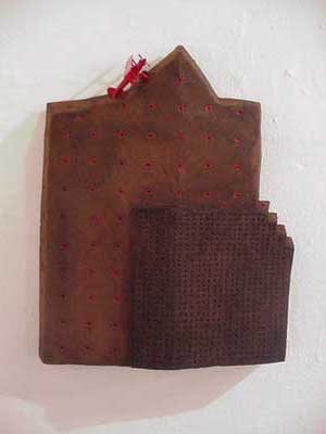 by Greg Streak Despite the recent glut of Technikon Natal showings in Durban this exhibition of selected works of 4th years appears suprisingly refreshed. If one considers that this is a group exhibition constructed from a selection of works of individual artists; artists working in disparate languages and idiosyncratic contents, then all credit should go to curator Storm van Rensburg for achieving a sense of cohesion. 'Upstart' is meditative and sombre. It reflects a series of personal investigations into contemporary issues and debates, ranging from the anxieties and paranoia of living in South Africa, to intimate explorations into personal identity. For those who are remotely visually literate, this exhibition will provide a wonderful read. In the video installation of Melissa Stevens, Untitled (2000), one is required to sit in a chair and confront a monitor. The monitor is a television - of the vernacular found in most South African homes. On the screen is the image of a man, cropped at the shoulders staring out blankly at you. Perhaps what he sees is a figure sitting in a chair staring blankly back at him. The banality of this experiment; sitting looking at someone looking at you, the seeming "nothingness" of this interaction, perhaps becomes a telling metaphor for most of our TV viewing. Sitting, observing, for the most part, prosaic soap operas and other vacuous audio-visual mush, is perhaps no more banal than the orchestration you have become a part of in the Gallery space. Catalogue (2000), by Colleen Wafer is seductive, but don't be deceived by the moon-blue glow that emanates from a horizontal light box, and which lights up the walls underneath the mezzanine. This exquisite blue hue is the consequence of fluorescent light filtered through a series of blue microfiche sheets - transparencies that were used to store inconceivable quantities of information; information that can only be accessed with specialized macro-lens viewing equipment which is not publicly available. A hand magnifying glass is teasingly presented for the viewer to access that which is unobtainable. One thinks here of sugarcoated catch phrases used to create a false sense of truth; a sleight of hand that reveals all but the actual secret. This microfiched, archive of the personal details of civilians - sealed away for the perusal only of the privileged, could reflect the dark underbelly of a power structure which utilizes this information for its own end. 'Upstart' is a precise expose of the current senior crop of creative potential in the Fine Art department of the Technikon Natal. The exhibition closes March 16