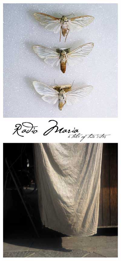 Lien Botha's 'Radio Maria' is a two-part work, the first half a portfolio of imgages taken during a recent residency in Florence. In an extract from the Month of Photography catalogue, Botha writes: "... I encountered three Marias of whom the main protagonist was a silk trader, Maria Pezzatini, who in exchange for English lessons presented me with a red radio the size of a human heart. The transmission was concluded when I arrived back home in South Africa to discover that an heirloom had been destroyed by clothes moths. ..." In the second part of the work Botha documents the life cycles of indigenous moths.