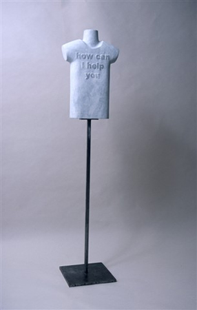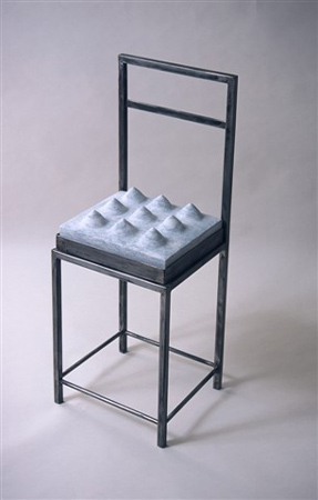 Toyboy is a fun, concise piece: a masked marble creature with oversized ears and no arms, smooth and good-looking but ultimately useless, is carted around on a steel trolley. This kind of simple visual pun is continued in other takes on the exhibition's theme. Uncomfortable is a chair with pointed marble seating for a cushion.