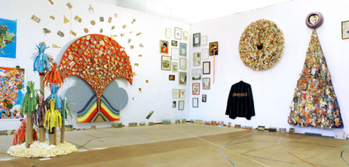 On a formal level, Clark's almost obsessive art practice is engaging. The work seems to appeal to an audience eager to see the resurgence of the authentic artwork, the 'hand- made', something 'real', something touched by the artist. This trend is also evident in the resurgent popularity of painting, particularly the somewhat raw painting to be found in galleries in London's East end or in Saatchi's behemoth six-part 'Triumph of Painting' exhibition series. Within the context of Art Basel, where slick, polished and gigantic 'Big Name Brand' artworks are the order of the day, there's something refreshing about work made with a pair of scissors, some Bostik, some pins and a bucket-load of labour and creative vision.